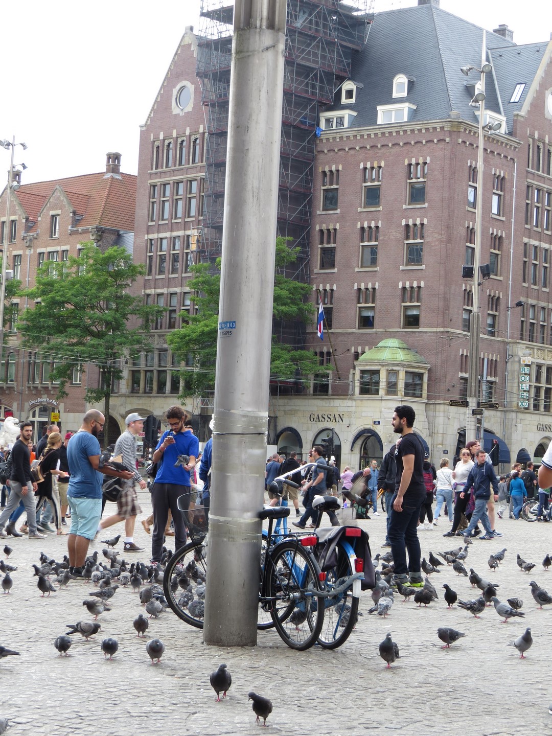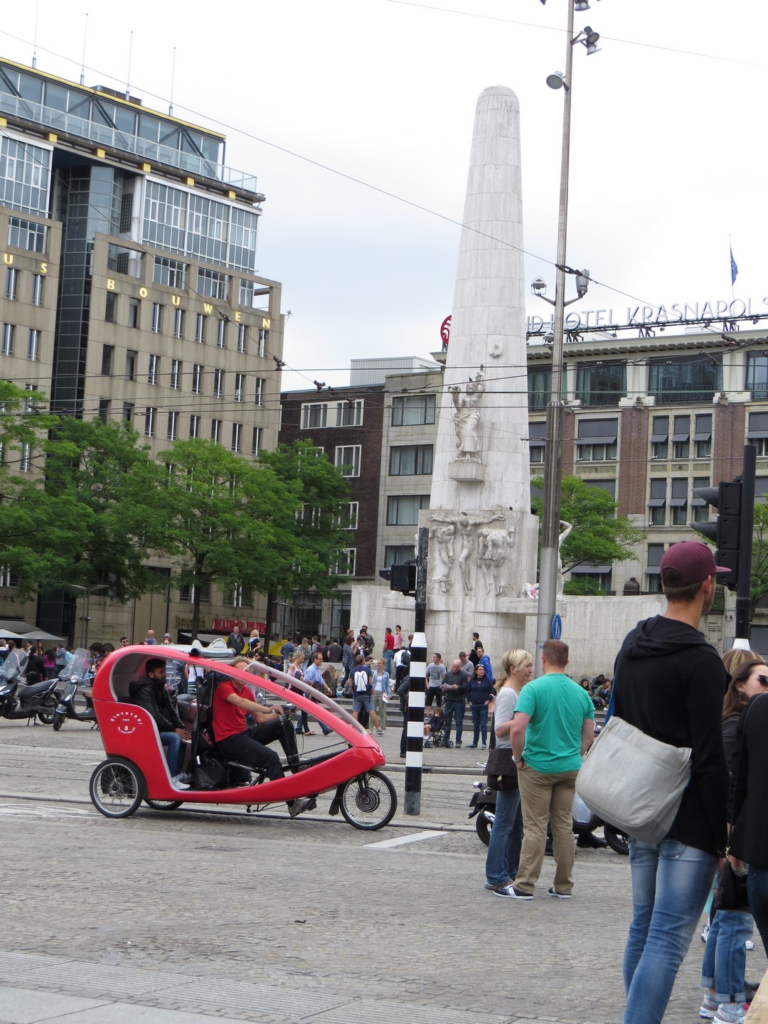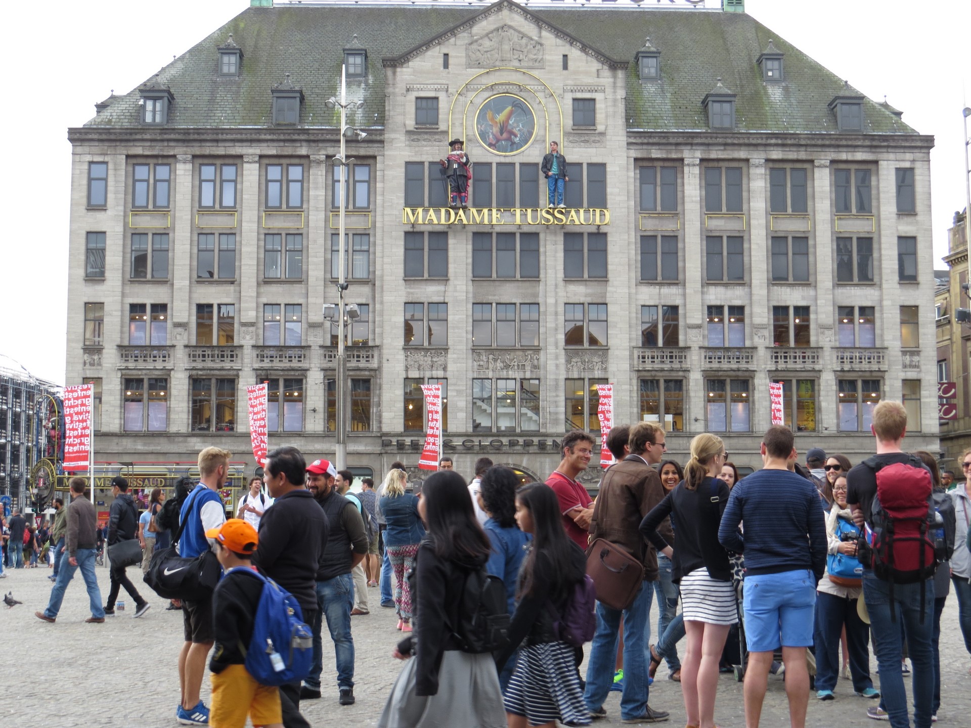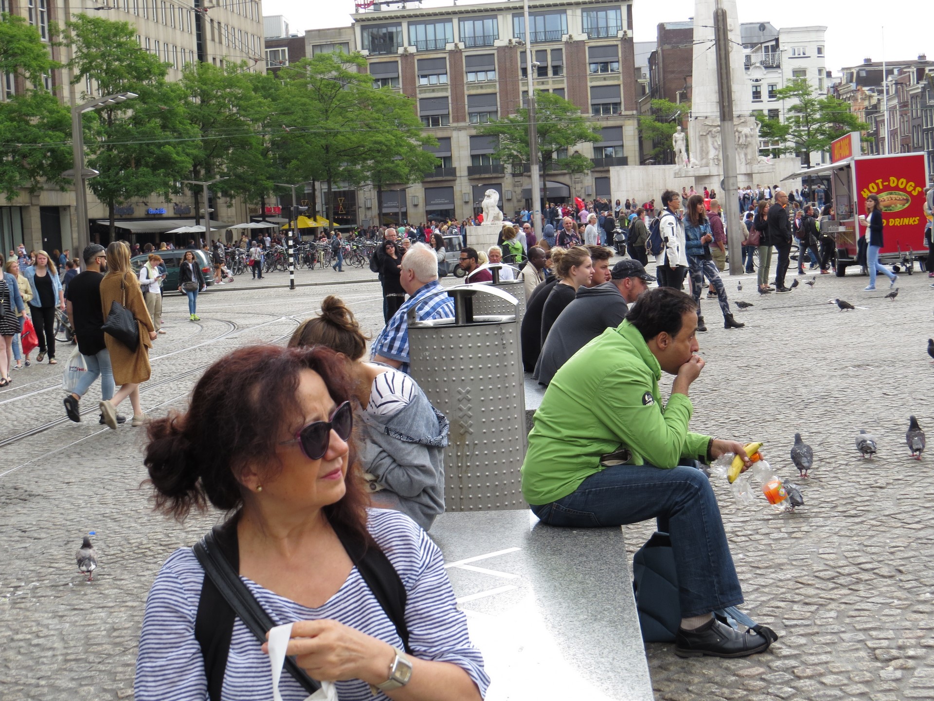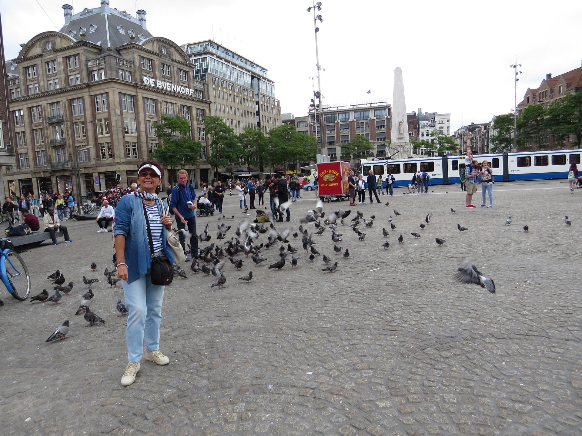Plaza Dam y el Palacio Real_Gigante, atravesada por peatones, tranvías, turistas y bicicletas. La Piazza Dam es el corazón de la ciudad, animada por ferias, carruseles, mercadillos y artistas callejeros que abarrotan esta enorme plaza empedrada durante todo el año. Siempre ha sido el escenario de grandes protestas y manifestaciones, como las protestas estudiantiles, pero también fue el corazón de la cultura hippie en los años 60 y todavía hoy es uno de los destinos favoritos de los artistas callejeros.