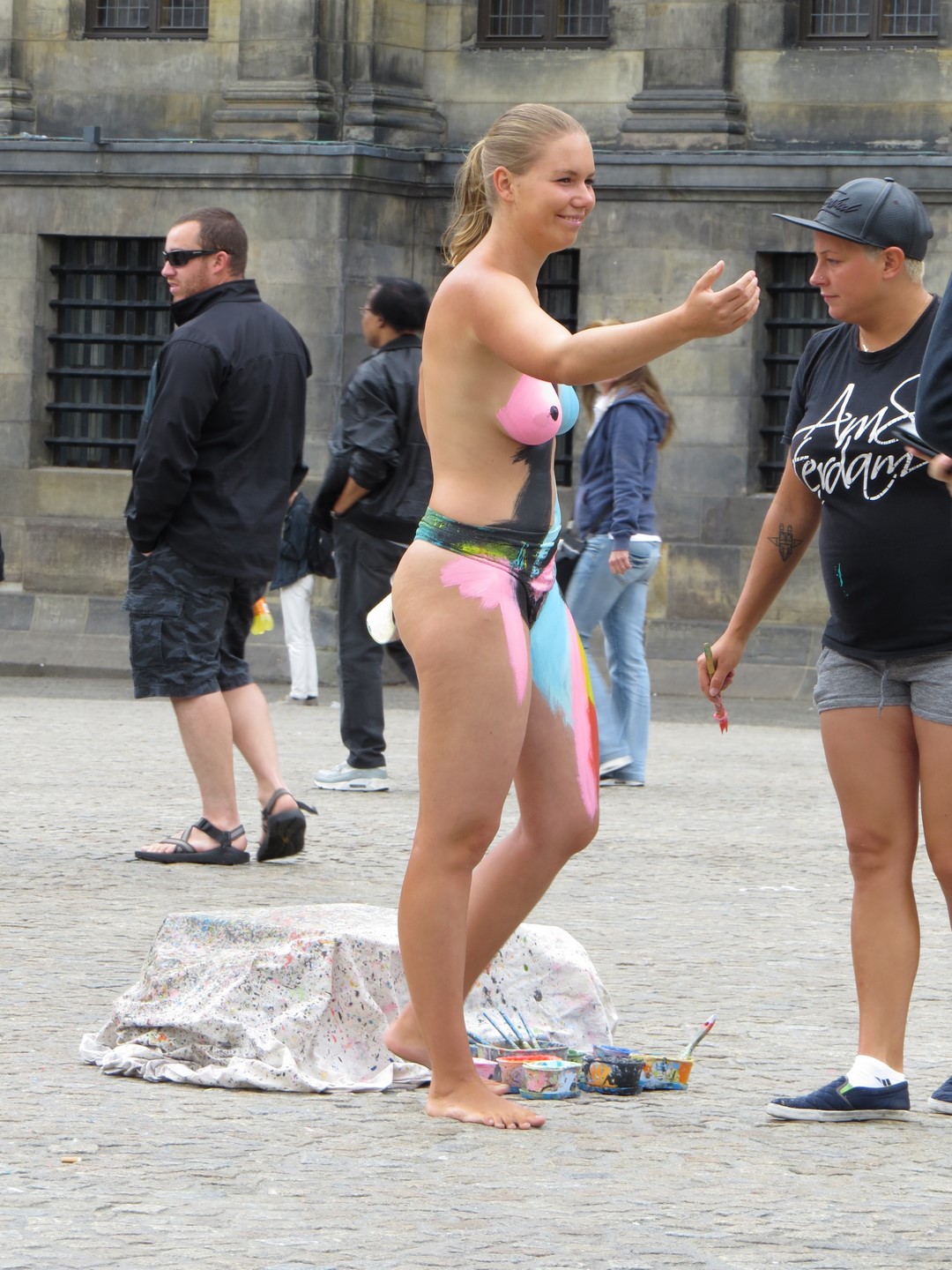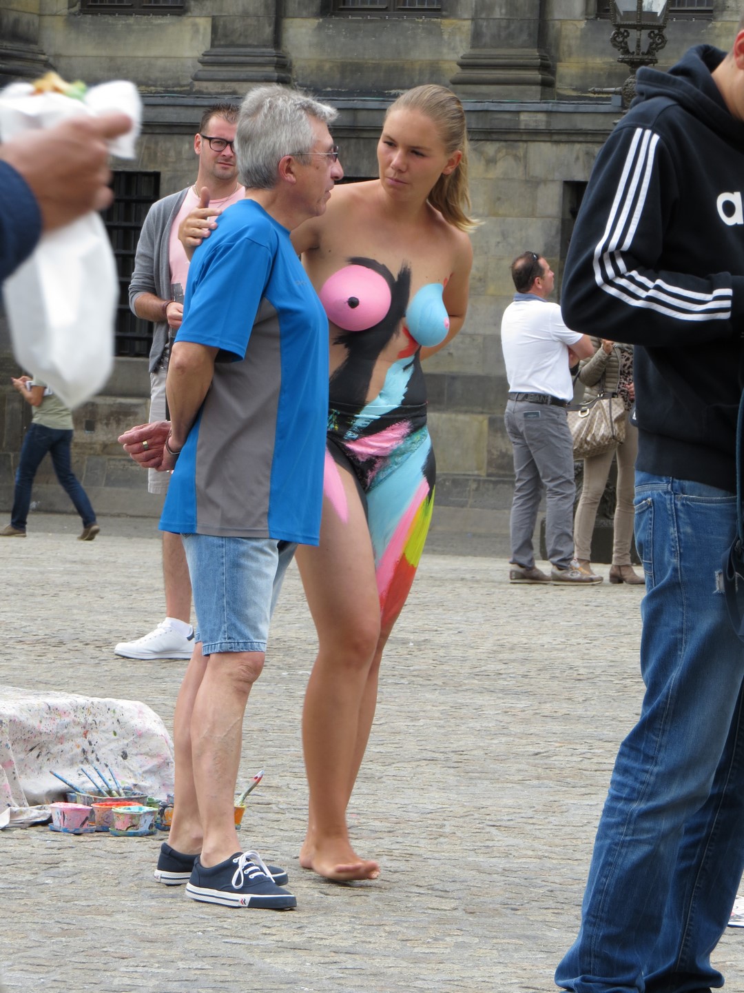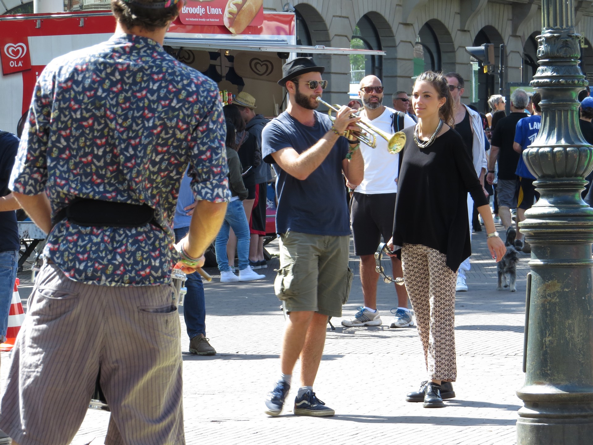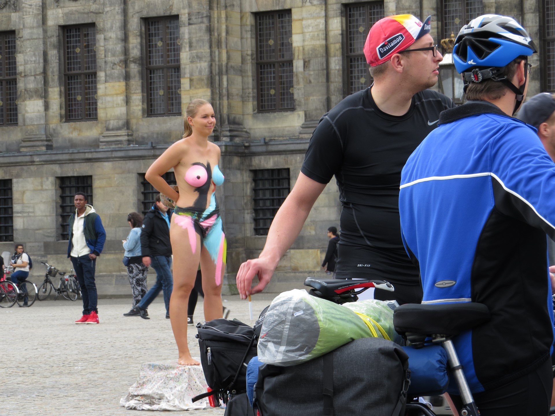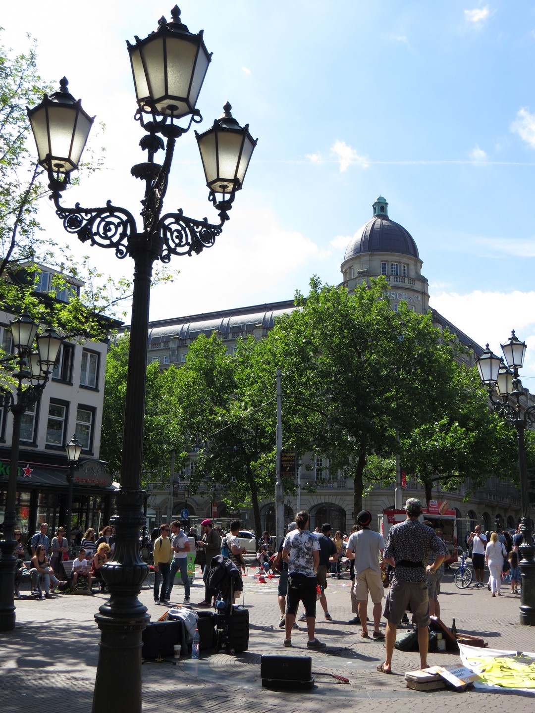 Plaza Dam y el Palacio Real_Gigante, atravesada por peatones, tranvías, turistas y bicicletas. La Piazza Dam es el corazón de la ciudad, animada por ferias, carruseles, mercadillos y artistas callejeros que abarrotan esta enorme plaza empedrada durante todo el año. Siempre ha sido el escenario de grandes protestas y manifestaciones, como las protestas estudiantiles, pero también fue el corazón de la cultura hippie en los años 60 y todavía hoy es uno de los destinos favoritos de los artistas callejeros.