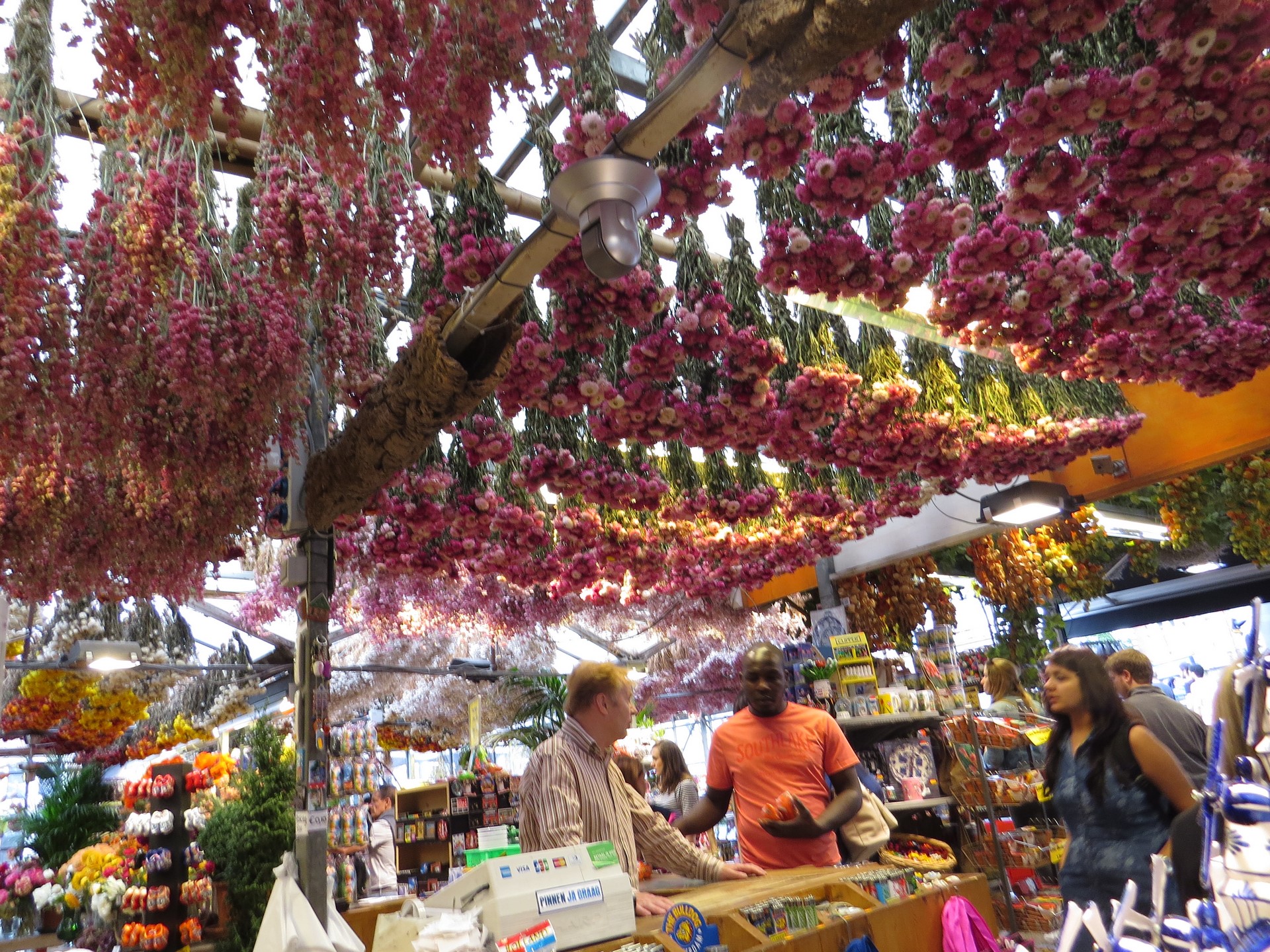 Aqui un Mercado de flores y semillas junto a unos de los tantos canales de la ciudad.